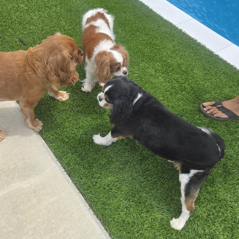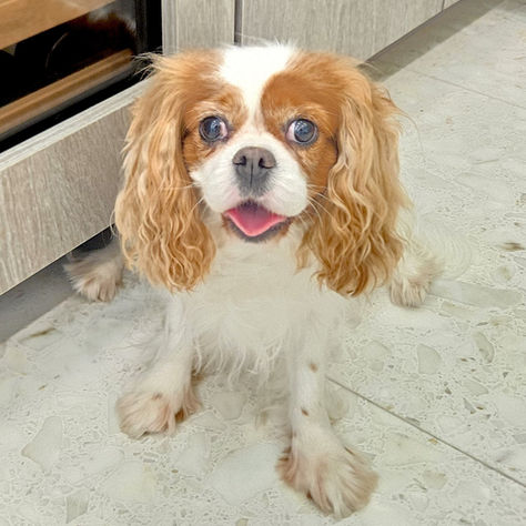 Beyond being adorable, one first thing you will notice about this Blenheim is that she is shorter in stature than most Cavies. No worries, Emily’s shorter legs don’t slow her down. However, stairs are difficult for her to maneuver. And she needs assistance getting into and out of things like beds and furniture.