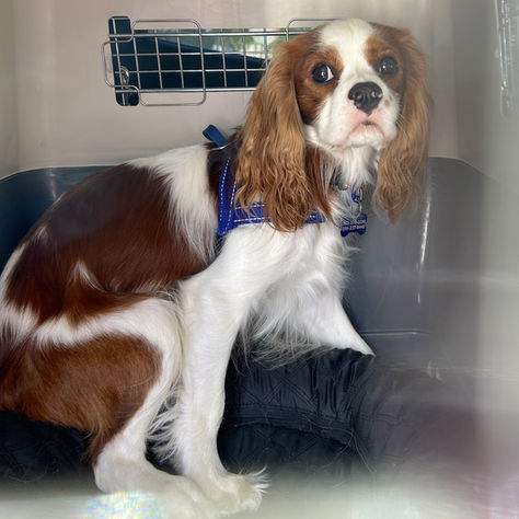 Fuji’s sweet face is kissed with a few freckles. This Blenheim’s fluffy ears and tail just add to his overall charm. If you are looking for a cute and somewhat mischievous companion Fuji is the one for you.