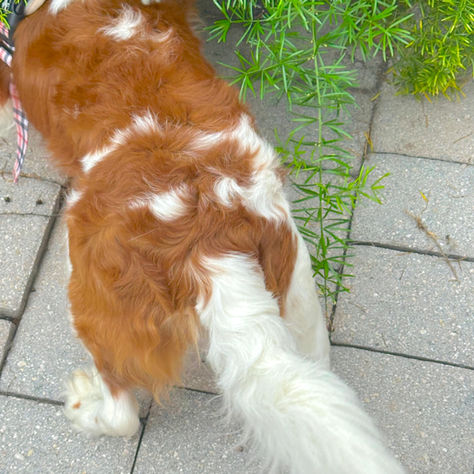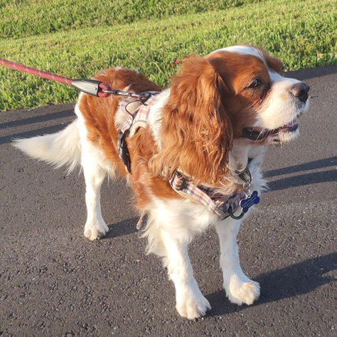 Meet Ozzie! You’ll often find this adorable Blenheim poking around the backyard scouring for lizards and other distractions. He truly enjoys searching for anything that moves, including cats. This outdoor loving dog adores long walks but will pull when he sees something that catches his interest. Ozzie is a naturally curious boy!